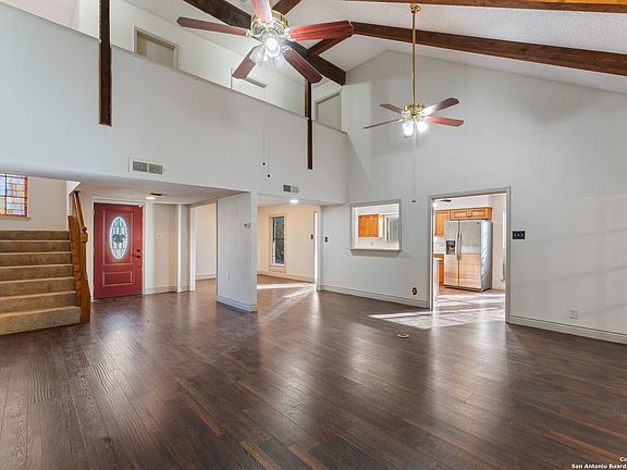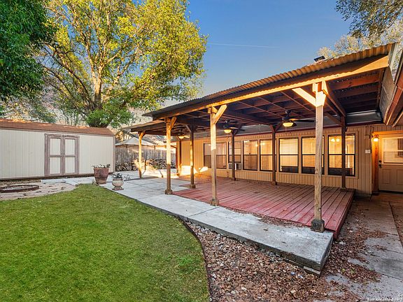 Located in North Central San Antonio in the quiet Quail Creek neighborhood, this home offers a practical layout with a bright, open living area and vaulted ceilings. A side-entry garage on a corner lot alone makes this property stand apart from the competition. The kitchen connects easily to the dining space, making it great for everyday living or hosting. The primary suite features a walk-in closet and private bath, while the backyard provides a covered patio and mature trees for shade along with gated entrances on both sides of the home. Conveniently situated near major highways: 281, Loop 1604, and plenty of shopping and dining options. No matter where you want to go you are only minutes away!