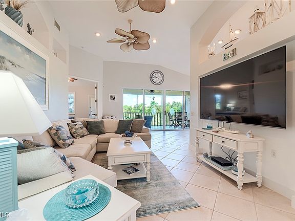 Wonderful sunset golf view over the 8th fairway with the lake as a background. This very spacious 2nd floor condo with over 2,000 sq ft has 3 bedrooms and 2 baths. One of the guest rooms appears to be as large as a "bonus" room and some even use it for an audio/video room or an office. On either side of the updated kitchen with new SS appliances is a formal dining area and a casual dining area with the golf view. The large screened lanai has tile on the diagonal that runs seamlessly from the living area of the home. The Master HOA and Condo Assoc are very well run with low quarterly fees providing water, external building and flood insurance, all lawn maintenance on a weekly schedule, 24x7 attended gated access, a community pool, hot tub, 4 Har-Tru tennis courts, and well-equipped fitness center open 24x7. Comcast fiber-optic cable and the Xfinity X1 platform with up to 4 TV/DVR boxes, and high-speed Wi-Fi Internet are all part of the dues - over a $750 quarterly value at retail. Social (for Club restaurant access) or golf membership at The Golf Club at Crown Colony is optional. And there is no waitlist for membership! This Club was chosen for the 2022 LPGA $1.5M Drive-On Championship, hosting the world's top women golfers, and is also used for PGA qualifying events.