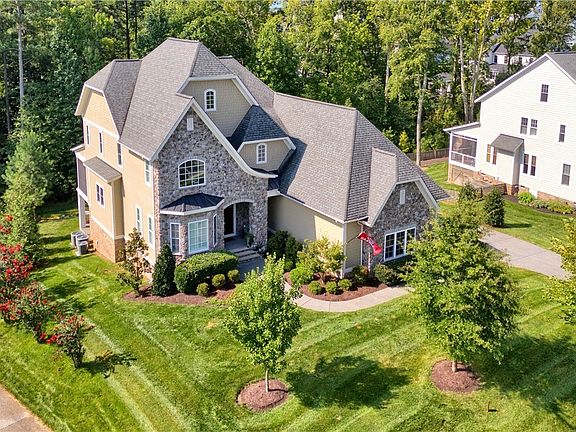 Welcome to 16307 Drumone Road in the award-winning Hallsley neighborhood of Midlothian. This former model Craftsman-style stone & Hardiplank sided home is perfect for the multi-generational family with 6 bedrooms (including a first-floor primary bedroom suite & office) & 4.5 bathrooms over 6,870 finished sqft over 3 finished levels of living space w/ a finished walk-out basement. Upon entering the 8-foot double entry doors you are greeted with a 2-story formal foyer with custom mouldings and hardwood floors. The hardwood floors, 10-foot ceilings & shaker style wainscoting/mouldings continue throughout the first floor of the home. The eat-in custom kitchen boasts a huge center island w/ granite and stainless steel appliances & is open to the living room with a coffered ceiling & gas/stone surround fireplace. The current owners fully screened the private rear-covered porch with a wooded view to rear of the home. The first floor is highlighted by a primary bedroom suite, complete w/ bay window, access to a covered screened porch, his & hers closets & ensuite bathroom. The first floor is completed wit an office (or additional bedroom) & half bath as well as a laundry room w/ mud room cubbies off the garage. The second level has a large loft-style offer/rec room space w/ hardwood floors & a walk-in closet & four flexible bedrooms! Two bedrooms share a well-appointed jack & jill bath & the two oversized bedrooms share a hall bath. You are going to love the finished basement that boasts a huge rec space w/ wet bar & walk-out access to a covered patio and custom hardscape/patio with a woodburning fireplace. The basement is finished with a possible in-law or au-pair suite with full bath, ample storage & workout room/gym. The landscaped exterior is completed with an aggregate oversized driveway & an attached side-entry 2-car garage. The Hallsley HOA has endless walking trails, clubhouse, pool, dog park & even a fishing pond. Top Chesterfield schools & only 25 minutes to downtown RVA.