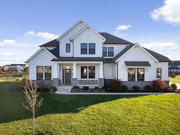 Stunning Like NEW HSE 6 bed 5.5 bath home complete w/ sparkling pool & over 6000 sq ft of luxurious living space. As you walk through the front door, you'll be greeted by a grand entryway that leads to a spacious living room w/2-story ceilings & an abundance of natural light. The gourmet kitchen is a chef's dream w/ large water fall island, top-of-the-line appliances, & ample storage space. Primary suite is a true retreat w/spa-like bathroom & massive custom walk-in closet. Bonus: 2nd primary on main w/ensuite bath. 3 additional bedrooms upstairs are equally impressive w/2 full baths & 22x16 family room equipped w/ plenty of room to relax & unwind. Basement w/ top of the line surround sound theater area, rec room, full bedroom w/5th full bath, wet bar rough-in & workout room give you the ultimate entertainment & relaxation zone right in your own home. Boasts dual zoned HVAC & 2 tankless water heaters. Outside the backyard oasis is perfect for entertaining w/a multi level pool, outdoor covered patio, & plenty of space for lounging & dining al fresco. Spacious 3 car garage w/ EV charging station. This home is truly an entertainer's dream w/all the amenities you could ask for & more. Whether you're looking for a peaceful escape or a place to host unforgettable gatherings this stunning home has it all! Close to Flat Fork Creek park, HTC, I-69, & wonderful local restaurants. WELCOME HOME