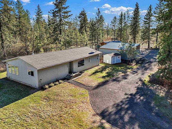 Life in the country....But close in Easy Living - with animals! Horses, Goats, Chickens or convert barn to shop. Level 5.53 acre parcel off road-county road. Stick built very snazzy-chill interior - totally updated- light & bright w/cathedral ceilings. 3 bedrooms, 2 bath - 1 level - LVP flooring - NO carpets!! Barn door separates living from 2nd & 3rd bedrooms. Primary separate from other bedrooms. Furniture negotiable. Kitchen-Large Butcher Block work spot. Colors are off white and fresh. Machine shed for cars, trailers, etc. 2 stall barn w/runs-Equine fence and round pen. New Roof 2024, Updated Septic 2024, New Deck 2025. 7 minutes to Cheney - 18 min Spokane Airport. Easy-Fix to enhance/curb appeal - Printable Flyer