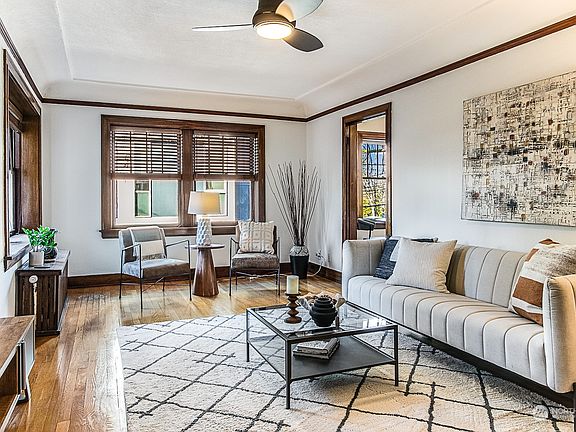 The Garden Court is a time-honored condo surrounded by parklike grounds. On a tree-lined street in vibrant Capitol Hill that allows for a peaceful retreat, beautiful #108 is one of the largest 1BR’s in the building. Decked out w/ coved ceilings, mahogany trim & oak floors. An arched walkway leads to the living room w/ picture molding & wood blinds. A sweet kitchen w/ space for dining, slab countertops, undermount sink & ample cabinets. BR is generous w/ a walk-in closet, ceiling fan & window looking toward the garden. Original tile in BA w/ built-ins, classic pedestal sink & tub. Don’t miss the room perfect for an office. #108 has recently updated wiring & the building is pet friendly! Relax in the garden or head outside the door & explore!