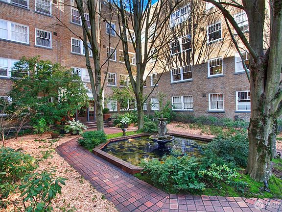 Welcome to Garden Court - a well-established, classic Capitol Hill condominium in an ideal location! Lovely, landscaped courtyard entry with fountain leads to a warm, inviting lobby w/historic charm & period details. This south-facing 1BR unit lives large – with 3 spacious walk-in closets – one perfect for use as an at home desk/office space. Beautiful living room w/refinished hardwood floors, new paint, coved ceiling & mahogany trim. Sweet kitchen and dining w/new butcher block counter & refrigerator. Wonderful, serene courtyard outlooks from all windows. Community deck and unique, parklike grounds for outdoor enjoyment. Basement laundry, storage locker & bike storage. No rental cap, pets allowed. Close to shops and transit. WalkScore 98!