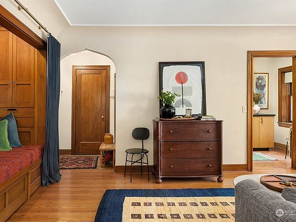 Welcome home to the historic Garden Court on Capitol Hill. This spacious west-facing unit boasts natural light and period charm. Immaculately kept original hardwood floors, mahogany trim, and bath tile. Large 1 bed, 1 bath, with a custom daybed and trundle bed for hosting overnight guests in the living room. Updated kitchen and stainless steel appliances. Look out your windows onto the beautifully landscaped backyard, which includes a bbq, hammock, tables, and chairs for tenants to enjoy—perfectly situated on Capitol Hill with shopping, restaurants, parks, and public transit nearby. 98 Walk Score.