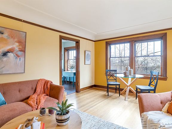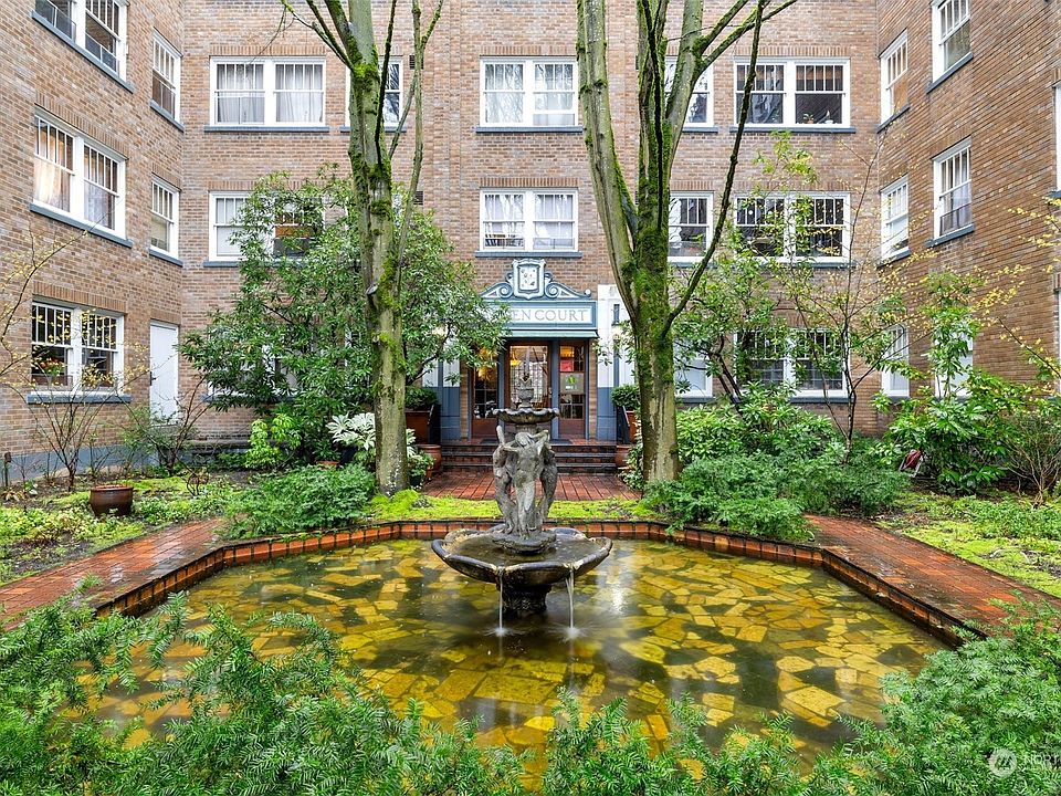 Very special Garden Court condo. West & north facing windows have territorial city views & overlook the spacious grounds & community deck. An added & unique feature is the large, extra finished room (41 sq ft) across the hall. Unlimited possibilites! Period details have been retained. Hdwd floors, coved ceilings, Mahagony molding & picture rail trim. Charming kitchen & sunny eating space w/just the right updates. Newer range/oven, refrigerator, stainless counter & Marmoleum floors. Lg bedroom has big double doored closet. Full bath recently updated w/crisp, white subway tile, tile floor & linen cabinet. Two large closets add to the interior space. Great location on extra large, landscaped lot for added privacy. A little gem that lives big.