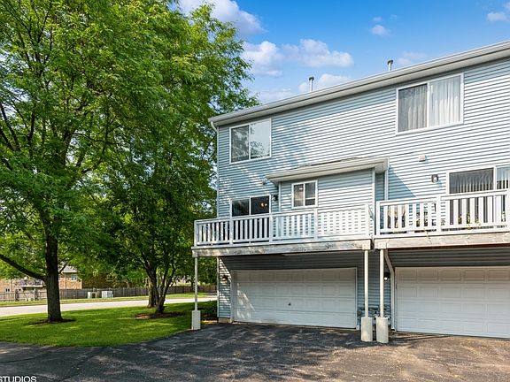 Take a look at this tremendous townhouse in a great location with a beautiful pond and colorful trees. You'll appreciate it's two generous bedrooms, 1 1/2 baths, 2-car garage, upstairs laundry, and lots of storage space. * Awesome end unit with tons of natural light and quiet solitude!! HOA provides exterior maintenance, lawn care, and snow removal. * Excellent access, walk to grade school, a huge forest preserve with expansive trail system, and situated close to Metra rail to Chicago. Features: maple floors, granite counters, stainless steel appliances, upstairs washer & dryer, spacious living room, and separate dining room with sliding glass door to the elevated deck. Lots of storage plus pull-down stairs to access a full attic for additional storage. Roof 2 years old. This great unit is rentable, the HOA is low, and it is move-in ready. Broker related.