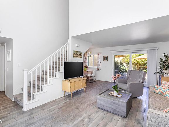 New Listing! Rarely available townhouse condominium in Todd Ranch 2. This beautiful unit features high ceilings, full front windows -- and a downstairs bedroom with a full bathroom. The upstairs features a large bedroom suite, and a full bathroom with dual vanities. There is another upstairs bedroom with a grand view of the large patio below. The unit comes with three parking spaces (a one-car garage, the driveway space and a numbered reserved space). This charming three bedroom, two bath unit has a beautifully updated kitchen that opens up to a grand living room with high ceilings and plenty of natural light. Another wonderful feature of this unit is the oversized patio with lush gardens, where your family and pets can enjoy an afternoon barbecue with the chirping birds and a nice coastal breeze. The unit is located in a prime location in the complex providing ample parking on a private street. Todd Ranch has four swimming pools and four clubhouses. The HOA dues include water and trash. Located within a Planned Urban Development (PUD) this property qualifies for Conventional, FHA and VA financing. Todd Ranch is an established, safe, friendly, all age community in a serene park-like setting. The complex is centrally located near restaurants, shopping centers, parks, recreation centers and top-rated multi-level schools. Don't miss this opportunity to own one of the most desirable townhomes in the complex and live in one of the most desirable neighborhoods in Ventura.