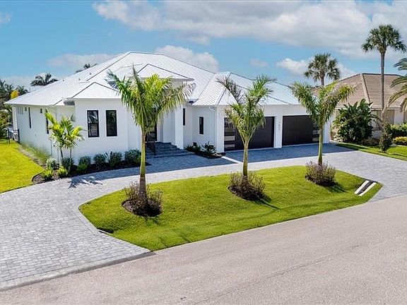 SAILBOAT LOT – SPECTACULAR WATER VIEWS – MINUTES TO OPEN WATER! Step into a world of refined luxury with this breathtaking, custom built waterfront residence in the highly sought-after Punta Gorda Isles. Situated on a premium sailboat-access lot just minutes from open water, this home is a boater’s paradise and a car enthusiast’s dream, blending high-end design with top-tier functionality. This exceptional property features 4 spacious bedrooms, 3 elegantly designed bathrooms, all meticulously crafted for effortless entertaining and elevated everyday living. At the heart of the home lies the gourmet kitchen, a true showpiece boasting custom-built walnut touch-to-open cabinetry, sleek Invisacook cooktop, European-imported porcelain waterfall-edge countertops, high-end Dacor appliances, Touch 2.0 smart faucet and hidden wine bar, a walk-through butler’s pantry with a sink, custom cabinetry, and extensive storage. The primary suite is equally impressive, offering a dream custom-designed walk-in closet complete with tailored shelving, drawers, and luxury hanging systems—an organizer’s dream. Designed to take full advantage of the waterfront setting, the home features 90-degree sliding glass doors that create a seamless indoor-outdoor living experience. Step outside to an entertainer’s oasis with a fully equipped outdoor kitchen with bar seating, fridge, and TV, heated saltwater pool with sun shelf and stunning water views. Expansive covered lanai and with plenty of living area. The living room features a sleek motorized lift TV cabinet, keeping the space clean and uncluttered while offering modern tech at your fingertips. The oversized laundry room includes a sink, extensive cabinetry, high-end washer and dryer, and ample room for pet-related needs. Enjoy peace of mind year-round with motorized Kevlar hurricane protection screens, offering transparency, visibility, and instant deployment at the push of a button. Car enthusiasts will fall in love with the oversized 4-car garage, outfitted with premium Poggenpohl cabinetry and butcher block work surfaces—ideal for showcasing your collection or working on prized vehicles. Best of all, the seawall is maintained by the City of Punta Gorda—a rare and highly valuable benefit for waterfront homeowners! This extraordinary property redefines luxury coastal living with world-class design, top-of-the-line finishes, and unmatched boating access. Don’t miss the opportunity to call this one-of-a-kind home yours! Schedule your private showing today!