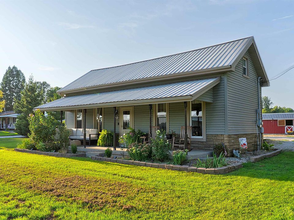 Charming country home with barn and fenced pasture! This adorable home sits on 2 lots that equal nearly a half acre. The home is spacious with a bedroom, a full bath, a laundry room, mud room, family room, dining room, and bedroom or"play room" all on the first floor. The extra wide stairs leads up to a large landing area that is being used for an exercise area and a bedroom and extra room that could also be used as a bedroom. This home has been updated with a metal roof, siding, a complete overhaul of the crawl space, floor joists and vapor barrier. There is a sump pump in the crawl space. The tiled floor in the kitchen/living room is heated to keep the chill off on cold mornings. Furnace is electric and heated floors are gas. The bathroom also has new concrete, flooring, plumbing, toilet, vanity , and tub. AC replaced in 2023. Outside you will find ample parking space with a 26X10 barn. The barn is anchored and has electric as well as sliding doors and stalls. The fencing is electric with the fence charger located inside the barn. All appliances are included in the sale.