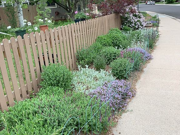 Picket fenceRaised garden bedsGlass-front uppersEnclosed porchInviting front porchCozy gas stoveTwo breakfast bars