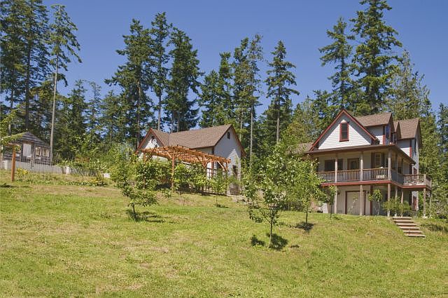 Redesigned front room and enhanced waterviews add to the Private location of this Pristine Marrowstone Island Lodge built using select materials & finishes. Enter main/guest houses thru the lushly landscaped courtyard w/pond & fountain. Hardwood floors, alder cabinets, and sweet views of Mystery Bay! Superb Kitchen w/Viking stove for cooking fresh using the propertys clams or organic garden choices. Greenhouse * Shop (wired for kiln) * 2nd Office Bldg. Kayak/clam from your beach!