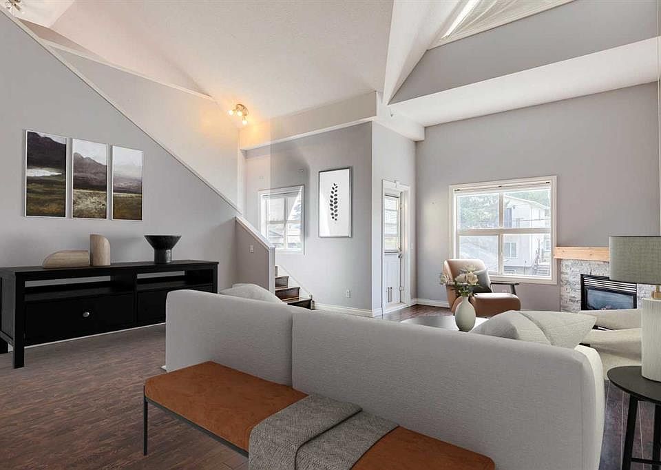 Welcome to this stunning 1,136 sqft TOP FLOOR 2-storey condo in the heart of vibrant Marda Loop, offering 1 spacious bedroom, 2 full bathrooms, a versatile loft, and a long private balcony! Soaring 2-storey ceilings - peaking at an impressive 25 feet - and expansive windows flood the space with natural light, creating an open, airy feel throughout. Step inside to discover thoughtful updates, including fresh paint completed in 2024, new window shades installed in November 2024, and luxurious in-floor heating throughout the entire unit. The sleek kitchen features stainless steel appliances -including a fridge that is 3 years old and a stove that is 5 years old - and opens to a huge living room with a beautiful gas fireplace and a designated dining area, perfect for entertaining. Laminate flooring, updated approximately 7 years ago, adds warmth and durability to the space. The private primary suite is tucked away with direct access to the balcony and a large ensuite bath with a corner soaker tub and a brand-new light fixture. A second full bathroom near the front entry (rare for a one-bedroom home) offers a tub/shower combo for added flexibility, and in-unit laundry (with a washer and dryer just 3 years old) is also included. Upstairs, the bright and spacious loft provides endless possibilities for a guest room, home office, gym, or play area. Enjoy summer evenings on your south-facing private balcony with a gas BBQ hook-up, and take advantage of the titled underground parking stall, secure storage locker, and convenient bike storage. Located just steps from boutique shops, trendy cafés, and some of Calgary’s best restaurants, plus minutes from 17th Avenue, downtown, and fantastic recreational amenities like an outdoor pool, tennis courts, skating rink, ball diamond, and public library - just a few short blocks away! This move-in-ready home is a rare find - book your showing today!