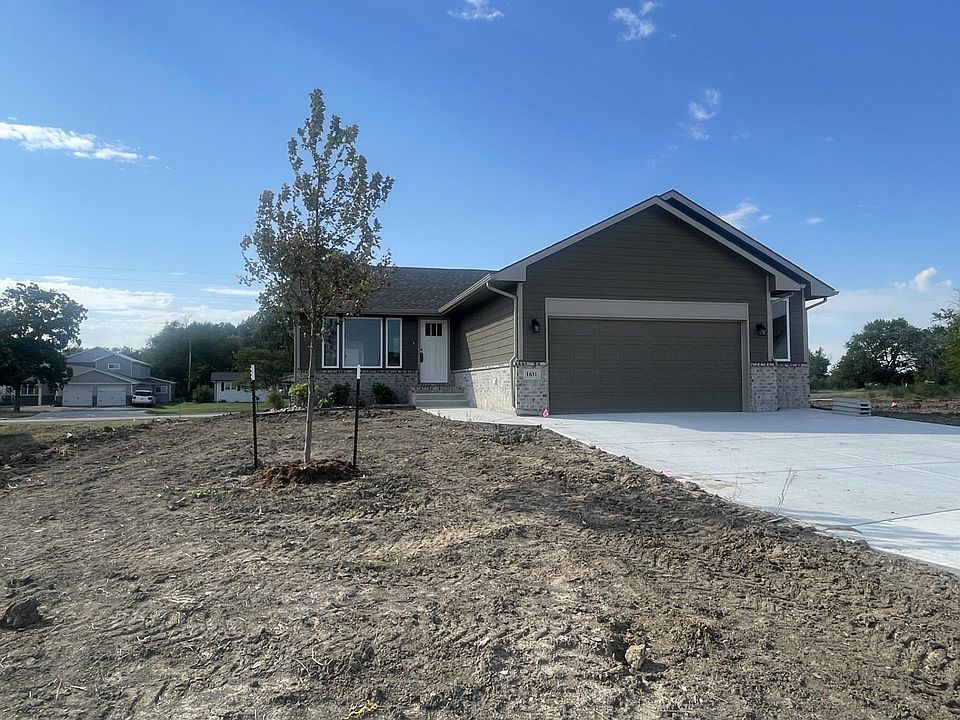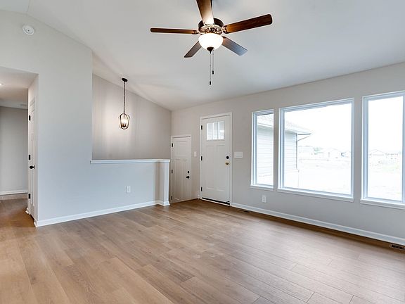 This NEW, move-in-ready home will now include sprinklers, sod, and some landscaping (2 trees & front shrub bed)! Discover the charming Willow floor plan by Comfort Homes Inc, a beautifully designed home on a large cul-de-sac lot perfect for modern living. This popular layout offers 2 bedrooms and 2 bathrooms on the main floor, an open-concept living, kitchen, and dining area that creates an inviting atmosphere. Vaulted ceilings add a touch of elegance, while luxury vinyl plank flooring enhances durability and style throughout the main living spaces. The kitchen features stylish staggered cabinets with crown molding, an island with an eating bar, and sleek solid surface countertops — ideal for entertaining and everyday meals. The full, unfinished basement provides endless possibilities, with laundry hookups and the potential to customize your space with a third bedroom, additional bathroom, and a family room. You will also enjoy the convenience of the oversized two car garage, this is the perfect place to call home. Sod and plants will be installed up to 30 days before closing or as weather permits.