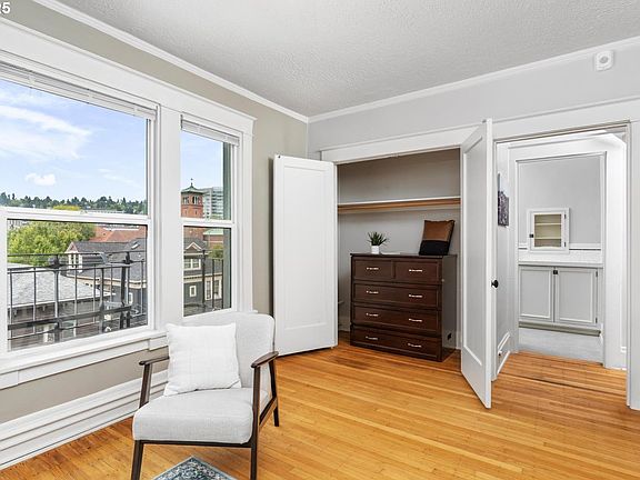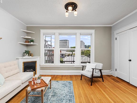 As the premier top-floor corner residence in historic Carlton Court, this one-bedroom condo is truly the gem of the building, offering the best light, views, and character in the Alphabet District. Expansive windows with southern and eastern exposures fill the home with natural light, highlighting original hardwood floors, vintage French doors, charming period fixtures, and a cozy gas fireplace. Thoughtful updates include a modern kitchen with gas cooking, in-unit washer and dryer, and a beautifully maintained claw-foot tub, blending timeless charm with everyday convenience. A deeded storage unit adds functionality, while a 99 Walk Score places NW 21st and 23rd Avenues, the Pearl District, Providence Park, Trader Joe’s, and the Streetcar all within easy reach. With no rental cap, this residence is as much a rare lifestyle opportunity as it is a compelling investment.