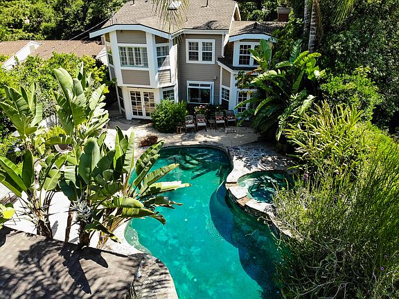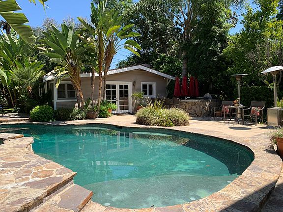 Gorgeous Verdugo Woodlands home with a very spacious guest house! The main house features a formal living room with high ceilings, wood floors and a cozy fireplace. Dining room with wood floors and French doors that open to a large serene back yard. Kitchen features custom cabinets, stone counters and stainless appliances. Family room with surround sound, wood floors and direct access to back yard, perfect for entertaining. Ground floor also features a space that can be used as an office or study area. Upstairs has a wonderful loft area with lots of bookshelves and overlooks the living room. Master suite, walk-in closet and private attached master bathroom with dual sinks. Two more spacious bedrooms and a bathroom. Between the two houses the exterior grounds offer a tropical feel with a pool, spa, and waterfall. Built in BBQ center making the patio area perfect for relaxing and entertaining plus there is plenty of grassy area to enjoy as well. Guest house has one bedroom and bath with living room, fireplace and a kitchen with dining area. Property is in the distinguished Verdugo Woodlands Elementary School.