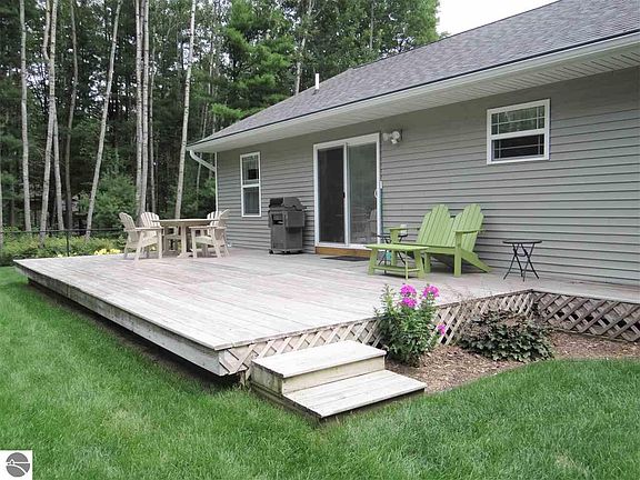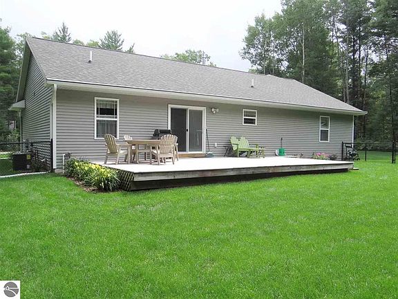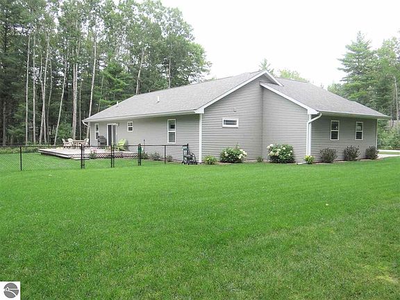 Quality built, well cared for ranch on a beautiful wooded setting yet with lots of sunshine to enjoy! Comfortable open floor plan with main level primary suite, lots of extras with granite counter tops, quality stainless appliances, beautiful wood flooring throughout main floor, large fenced-in park like back yard w/large rear deck and attached 3 car garage! Lower level is finished with family/theatre room, 4th bedroom and bath and office! All on a 1-acre lot in a desirable sub of other nice homes and bonus - walking access to state land Lost Lake trails! What's not to love!