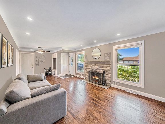 Welcome to this Charming Brick Ranch with Modern Upgrades & Serene Water Views. Step inside to find refinished hardwood floors, two inviting fireplaces, updated kitchen and bathrooms that perfectly blend convenience with timeless character. The walkout basement is an entertainer's dream, complete with a full bar and an expansive family room that opens directly to your private backyard oasis. Outdoors, a generous 22' x 17' deck that provides great space for gatherings, relaxing mornings, or simply soaking in the peaceful views of the fenced yard and the tranquil water beyond. Additional features include easy-care tile flooring, a durable brick exterior, and a setting that offers both privacy and a connection to nature. This home combines classic charm, thoughtful updates, and abundant living space an ideal choice for anyone seeking comfort, style, and a serene place to call home!