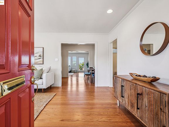 Welcome to 1631 Santa Clara, perched on a hill in the coveted Richmond Annex! With big spaces and big views, there is so much to see. Just a few steps up to the front door, and you enter the spacious, light-filled living room with large windows and a cozy fireplace. As you move toward the formal dining room, you will see the efficient kitchen with stone countertops and abundant cabinets. Peek through the kitchen pass-through, or just turn the corner, and you are soaking in the spectacular and spacious family room, with a vaulted, open-beam ceiling, a fireplace, and large windows that show the gorgeous view of San Francisco, the Bay, and the Golden Gate Bridge. A deck offers more opportunity to see the view, relax, or entertain. The primary bedroom, with an extra space for a walk-in closet or office, also features a vaulted, open-beam ceiling and a beautiful view. A second bedroom plus a full bath round out this level. Downstairs, there are three additional bedrooms, one full bath, and three open areas - a pantry, a utility room, and a spacious laundry room. The driveway leads down to the detached garage, which was formerly used as a workshop. The back garden is another great spot to relax or garden and has vegetable beds ready for planting. Close to shopping, dining, I-80, BART.