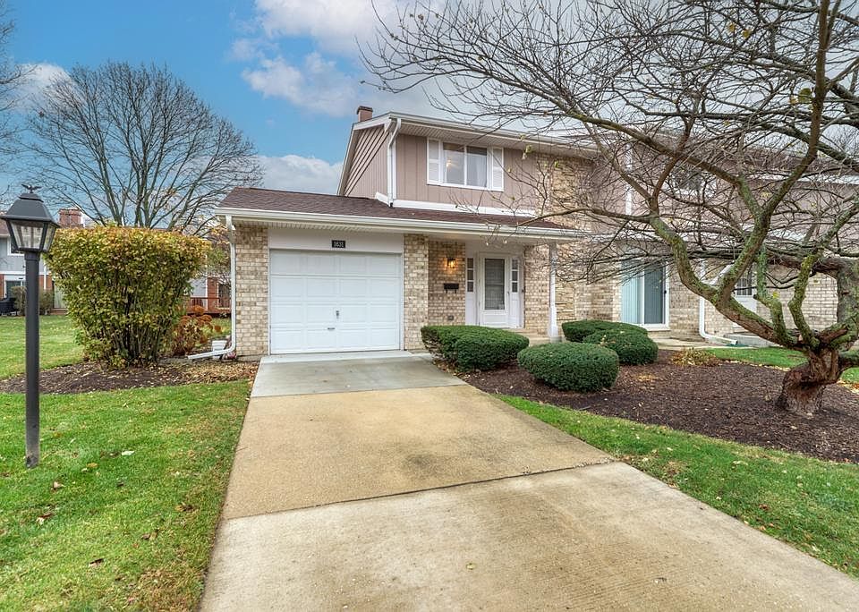 MULTIPLE OFFERS RECEIVED. BEST AND HIGHEST DUE SUNDAY, NOV 23 AT 9 AM. Welcome to this charming end-unit townhome featuring a private entrance and an attached one-car garage. The first floor offers Pergo flooring, spacious room sizes enhanced by crown molding, and a cozy fireplace with ceramic logs. The kitchen features a neutral palette, newer stainless steel appliances (2022), a newer faucet (2024), and a garbage disposal (2025). A convenient powder room completes the main level. Upstairs, the spacious primary suite includes a full wall of closets, a ceiling fan with a light, two-inch blinds, and neutral carpet. The secondary bedroom features white built-in shelving, decorative wall decal, and a walk-in closet. The hallway bath maintains a clean, neutral style. The unfinished basement provides excellent storage or the perfect opportunity to create additional living space. Additional updates include a washer and dryer replaced within the last five years, a water heater (2023), and an ejector pump (2025). Outdoors, a nicely sized deck overlooks serene green space-ideal for relaxing or entertaining.