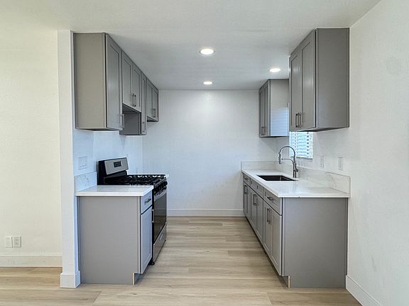 New range and ovenAbundant natural lightRoomy kitchenElegant quartz countertopsRoomy layoutLarge stainless steel sinkLarge bedrooms