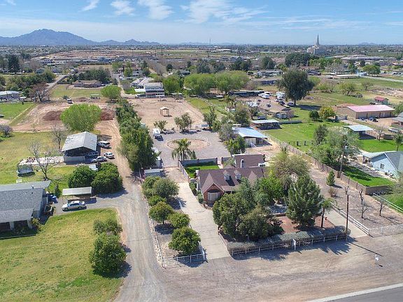 Sunshine Ranch! Welcome home to this unique property located in the heart of Gilbert situated on 2.49 acres. All the amenities of a Horse Lover's Dream are included: Lighted roping arena with bleacher seating, observation platform, 3 horse stall paddock with washing stall, horse walking corral, 3 more corrals towards back of property with water, tack room, large pasture that can be separated into two smaller pastures, room for hay storage, covered RV storage with electricity, storage shed, 4 covered parking stalls, red barn storage shed and more. Sunshine Ranch is ideally located with nearby San Tan Mall for convenient shopping, eating, and entertainment. This charming red brick home has a 2 car garage, two separate drives on both sides of the home, circular drive with tons of parking for