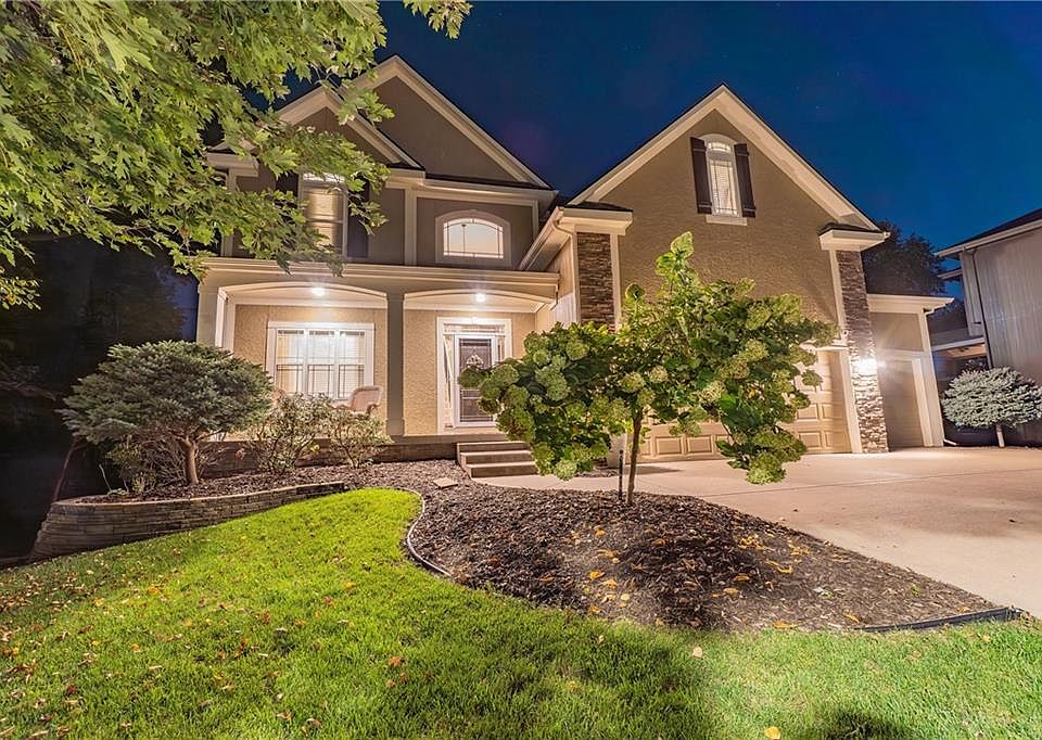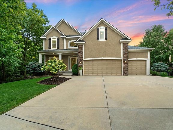 Noted as the BEST lot in Stonebridge! This true gem is tucked away on a private dead end cul-de-sac and bordered on two sides by wooded trails, this stunning 2-story home offers both tranquility and community living in one of the area's most desirable neighborhoods. Featuring 4 spacious bedrooms, 3 full baths, 2 half baths, and a fully finished basement, this home is built for comfort and entertaining. The large, updated kitchen is a chef’s dream with freshly painted cabinets, marble countertops, gas double oven with air-fryer, stylish backsplash, huge walk-in pantry, and high-end extra durable LVP flooring throughout the main level. New carpet installed upstairs in February 2025, and new HVAC system April 2025. Upstairs, enjoy a spacious primary suite with a spa-like bathroom, including a jetted tub, a walk-in shower with three shower heads, and a large walk-in closet conveniently connected to the bedroom-level laundry room. Secondary bedrooms include one with a private en-suite bath, while the other two share a Jack-and-Jill bathroom with separate vanities. The finished basement is ready for your 2025 Chiefs season parties with plenty of space for a pool table, custom wet bar, and more—making it the ultimate gathering spot. Oversized 3-car garage features 12-foot ceilings, extended 3rd car slot, epoxy flooring, utility sink, and a Gator electric storage lift to keep everything neatly out of the way. Convenient location near Garmin, Heritage Park, multiple golf courses and city parks, shopping and highway access. This rare find is located in a highly social community with access to 4 neighborhood pools, play areas, gym, walking trails, new pickleball courts, sand volleyball, and tons of neighborhood events. Just minutes from award-winning Spring Hill Schools! Owner/Agent