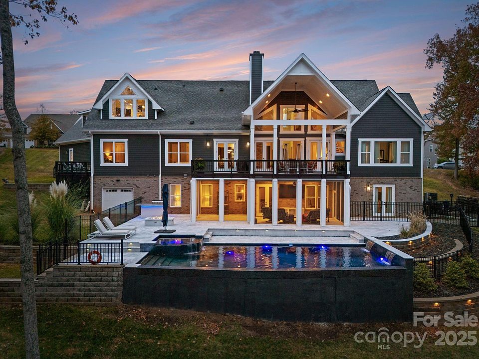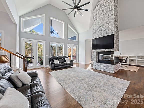 Absolutely stunning waterfront retreat on Lake Wylie! Situated on just over an acre within the desireable Palisades area with no HOA restrictions, this exceptional 6 bedroom, 5 full/2 half bath property offers unmatched freedom and luxury in one of Charlotte's most coveted locations. A charming rocking chair front porch welcomes you into a breathtaking 2-story great room, highlighted by a dramatic three sided floor-to-ceiling stone fireplace. The open dining area flows seamlessly into the chef's kitchen, featuring an oversized island with breakfast bar, 36" gas cooktop, double wall ovens and a full size side by side refrigerator and freezer. Just off the great room, the covered deck provides one of many inviting outdoor living spaces with tranquil lake views. The main level primary suite impresses with a spacious 17x21 bedroom overlooking the water, along with spa-inspired bath and walk-in closet. Two additional bedrooms, a jack and jill bath, walk-in pantry and a large laundry room leading to the 3-car garage complete the main level. Upstairs, you'll find a full private apartment -- ideal for in-laws, guests, and more -- offering a beautiful kitchen, open living area with lake views, a generous bedroom, 1.5 baths, pantry and laundry. The expansive basement adds even more versatility featuring a living room/rec room, full kitchen, 2 bedrooms and 2 full baths. Over 1,000 sf of unfinished space offers endless possibilities for storage, home gym or future expansion. A separate one-car garage with workshop is perfect for a golf cart, tools and lake toys. Walk out from the basement to a spacious screened porch overlooking the inground pool, hot tub, grill station, built-in firepit and, of course, Lake Wylie. Follow the gentle path down to your private dock and enjoy boating, water sports, fishing or peaceful sunset views. This unique property offers true lake living with unmatched convenience. Schedule your appointment to see this incredible property today!