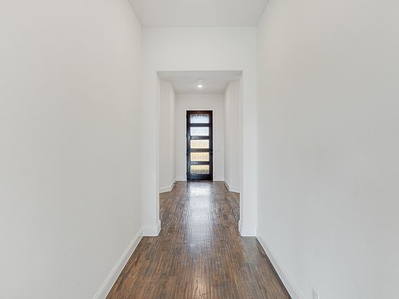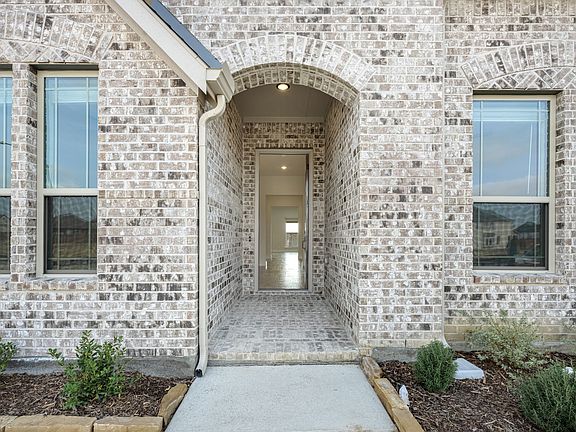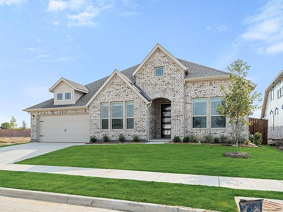 BRAND NEW & NEVER LIVED IN – Ready NOW! Discover refined single-story living in Bloomfield Homes' Caraway plan, offering 4 bedrooms, 3 full baths, and a spacious deep garage all set on an inviting interior lot with exceptional curb appeal. The upgraded all-brick elevation and stylish 8’ 5-Lite front door create a welcoming first impression. Step inside to a beautifully open layout where site-finished hardwood flooring extends through the main living areas, paired with 8' interior doors that enhance the flow and volume of the space. The Family Room is filled with natural light from large windows, while 2” blinds throughout the home offer comfort and privacy from day one. The Deluxe Kitchen is crafted for style and function, quartz countertops, pot and pan drawers, built-in stainless appliances, a 5-burner gas cooktop, and a custom wood vent hood. A large island with pendant lighting and a walk-in pantry makes this a true centerpiece of the home. Thoughtful touches like a mud bench in the utility room and cabinets. The Primary Suite is tucked at the back of the home with peaceful backyard views and features a luxury bath with individual vanities, and a closet with direct access to the laundry. Additional highlights include full gutters, an 8' back patio door, and a gas drop on the covered back porch—perfect for grilling and enjoying outdoor evenings. Located in the vibrant Wildflower Ranch community with trails and outdoor amenities, this home blends craftsmanship and comfort in a setting you'll love. Visit Bloomfield today and make the Caraway your next move!