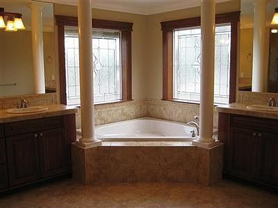 Lot 4. Great room design. Big home, decent yard areas & loaded with interior extras. Extravagant painted millwork, extensive cherry cabinets, boxed beam ceiling & columns in dining area, built-in buffet w/ wet bar & wine refer, stunning kitchen + huge mastr suite w/sitting room and see-thru frplc w/awesome spa bath and 9-head shower. Tile counters & tile backsplashes throughout. Additional bedrooms are really big too and include Jack & Jill bath design with separate vanities. Many more extras.