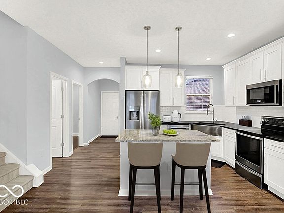Welcome home to this beautiful 4-bedroom, 2.5-bath Westfield townhome showcasing neutral tones and engineered hardwood flooring throughout the main level. The open floorplan is enhanced by high ceilings, recessed lighting, and abundant natural light. Enjoy a cozy fireplace in the living room, a dedicated dining area, and a modern kitchen featuring white cabinetry, stainless steel appliances, and a spacious island with seating. The main floor offers a bonus room perfect for an office or guest room, a half bath, and direct access to the attached 2-car garage. Upstairs, the primary suite impresses with recessed lighting, a tray ceiling, and a luxurious ensuite bath complete with two separate vanities, a large shower with full body spray, and a walk-in closet with custom organizers. Two additional generously sized bedrooms, a full hall bath, and a second-floor laundry room complete the upper level. Relax outdoors on the back patio and enjoy the fenced backyard-perfect for entertaining or unwinding at the end of the day. This move-in ready home blends comfort, style, and convenience in a prime Westfield location.
