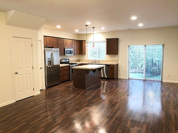 Fabulous location in Happy Valley! Freshly refinished l ! l end unit townhome for rent. As an end unit there are more windows (LIGHT!) and more privacy. The home features a lovely parents suite with walk in closet. Just outside the parents suite is flex space that could be an office or a playroom area. The great room/kitchen is large, open and has rich, dark LVT flooring. The kitchen has plenty of space with a big island , stainless steel appliances and a gas range top. For extra comfort all bedrooms and play area have been re-carpeted throughout. The backyard is fully fenced and has an easy care turfed 'lawn'. There is a laundry room with washer and dryer. The home A/C and a 1 car with plenty of additional parking in the driveway and street. On nice days enjoy the beautiful, big park that is only 1 block away. And for your convenience there is a grocery store only a 7 minute drive away and in the opposite direction -approximately four minute drive away - you will find a brand new Starbucks. In that same area is McDonalds, Subway and a gas station. We are scheduling viewings starting on Saturday September 18th. Monthly rent $2,375 with $2,500 deposit and 1 year lease. Easy application process. 1 year lease, monthly rent $2,375. $2,500 deposit. Tenant to pay all utilities including sewer, which is $65 paid directly to Landlord as Clackamas County will not bill tenant.