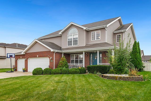 Come see this popular Manchester Model in highly desirable Leighlinbridge of Manhattan. This 4 bedroom, 2 1/2 bath home with full finished basement is spacious and clean. Open & airy, this welcoming floor plan has spacious rooms throughout. The formal dining room has hardwood floors. The large eat-in kitchen boasts maple cabinetry, newer stainless steel appliances and a pantry closet. Head upstairs to the gigantic primary suite with oversized soaker tub, separate shower with mosaic glass tile and a roomy walk-in closet. There are 3 additional, very nicely sized bedrooms and a full bathroom. The full finished basement has an additional room that can be utilized as an office, play room, workout room or can be converted into an additional bedroom. There is distressed epoxy flooring in the recreation room with a bar--perfect for entertaining. There is an extra deep 3 car garage and front porch for relaxing outside. Head out back to a large yard with vinyl fence and deck. Schedule your showing today, you don't want to miss out on this one in a great location!!