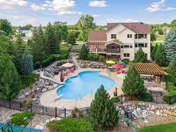 Perched perfectly on arguably the most scenic lot in the city, this custom-built home in the sought-after "Orchard Trail" community (a small enclave of 32 custom-built estates) boasts artisan details throughout its 4200+ finished square feet. With nearly 2 million invested in the property, you won't find any details overlooked. The main floor features an open floor plan with a gourmet kitchen, designer finishes, commercial-grade appliances, and walls of windows overlooking your "resort" style saltwater pool, complete with a built-in water slide, outdoor kitchen, hot tub, and sport court. Enjoy entertaining guests in the custom-finished basement, which includes a full wet bar, custom woodwork throughout, a walk-in wine cellar, a "spa-like" bathroom with a steam shower, a home office, a 5th bedroom with built in Murphy beds and plenty of storage. The upper level features 4 generous bedrooms and 3 bathrooms (one en-suite and one Jack and Jill), including the owner's bedroom with panoramic views for miles overlooking the valley. Hurry, as this is a once-in-a-lifetime opportunity to acquire a one-of-a-kind property well below duplication cost. See supplements for a Matterport tour of the home.