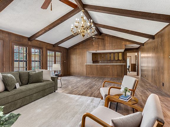 Cozy wood-burning fireplaceRv padSpacious ranch-style homeFormal dining roomBack patioWet barCorner lot