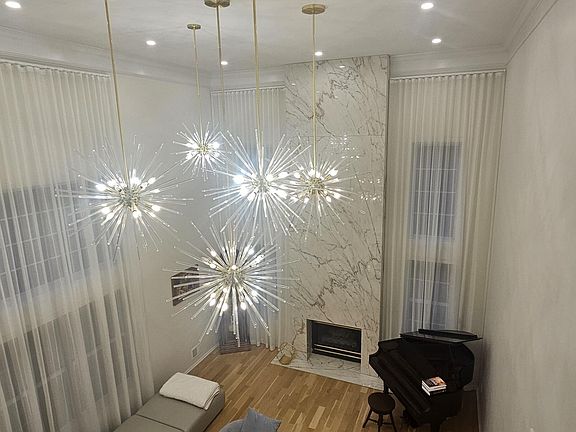 - Two-story family room with a marble fireplace and breathtaking lighting