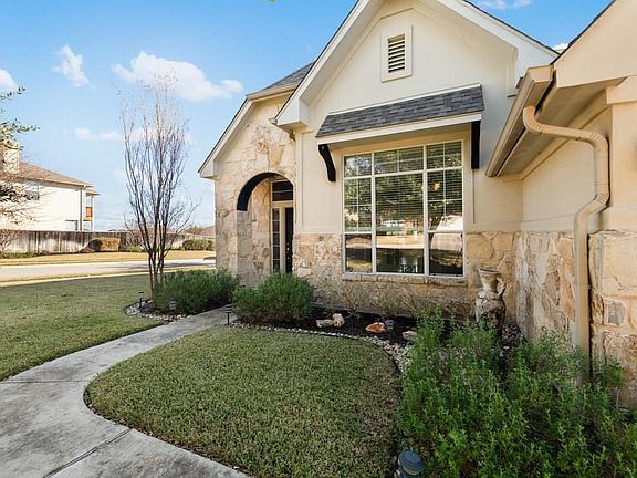 MULTIPLE OFFERS received. Submit best and final by Monday 2/10/20 at 5pm. This meticulously maintained home in the heart of Teravista features 4 spacious bedrooms and 2 bathrooms in 1,800 square feet of living space. Once you step through the beautiful wrought iron front door, you are greeted by the bright and light living room with impressive 10ft ceilings, luxury wood-look tile and crown molding. The open concept living room leads into the large kitchen with granite counters, stainless steel gas appliances, recessed lighting, and an ample dining space with a cozy window seat. This home also features walk-in closets, an abundance of storage, double sinks in both bathrooms, epoxy flooring in the garage, water softener, a covered patio, large corner lot and it is located around the corner from a small neighborhood park. This home is zoned for the highly rated Round Rock School District and is close to many shopping and dining options.