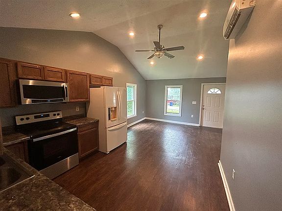 Interior highlights include a spacious living room with natural light, a fully equipped kitchen with refrigerator, oven, and dishwasher, and a washer/dryer on-site for tenant convenience. Each bedroom features neutral finishes and closet space, making the home ideal for families, professionals, or students seeking a clean and reliable rental.
