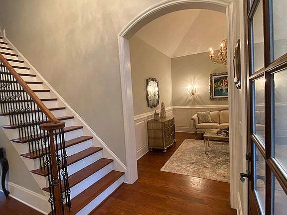 Beautiful home in gated community. Lower level features hardwood floors throughout, Large Master Bedroom with a cathedral ceiling, a sitting area with a peaked pointed ceiling, walk-in closet with built ins and en-suite. Large family room with vaulted ceiling and custom built ins and fireplace, Dinning room with a bay window, Formal living room with peaked ceiling, Gorgeous kitchen with massive rare granite custom island which includes cabinetry with soft close doors & rollouts, under cabinet lighting, dishwasher, Farmhouse sink, trash pullout, custom built Faux hood, carrara marble backsplash and marble surround countertops, mini wine fridge. Keeping room off of kitchen with fireplace, reading nook, cabinetry, and peaked ceiling, Breakfast area with peaked ceiling also. Half-Bath on main, laundry room sink & cabinets. Second level includes three very spacious bedrooms one with a bay window, 2 baths one being a Jack & Jill, Bonus room, Office. Plantation Shutters throughout. Backyard includes large deck, stairs which lead down to a covered area, also leads to circular area with a big fireplace and a mini “kitchen area” with a built in grill, mini fridge, & sink, beautiful Putting Green. Fenced. Three car garage.