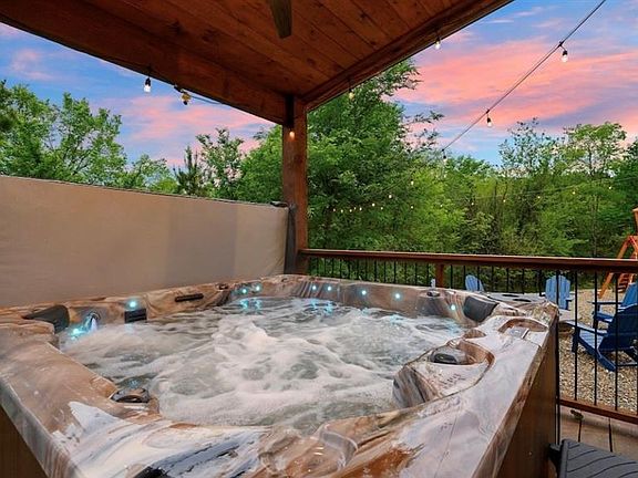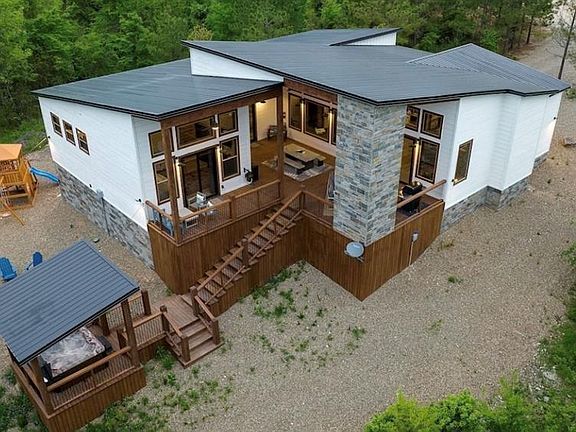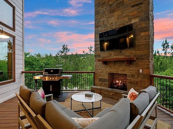 Out back, an expansive deck offers a second stone fireplace for cozy evenings under the stars, while the private fire pit creates the perfect setting for roasting marshmallows and sharing stories. Whether relaxing by the fire, exploring the nearby lake, or enjoying the many attractions just minutes away, this property offers the ultimate in upscale cabin living.