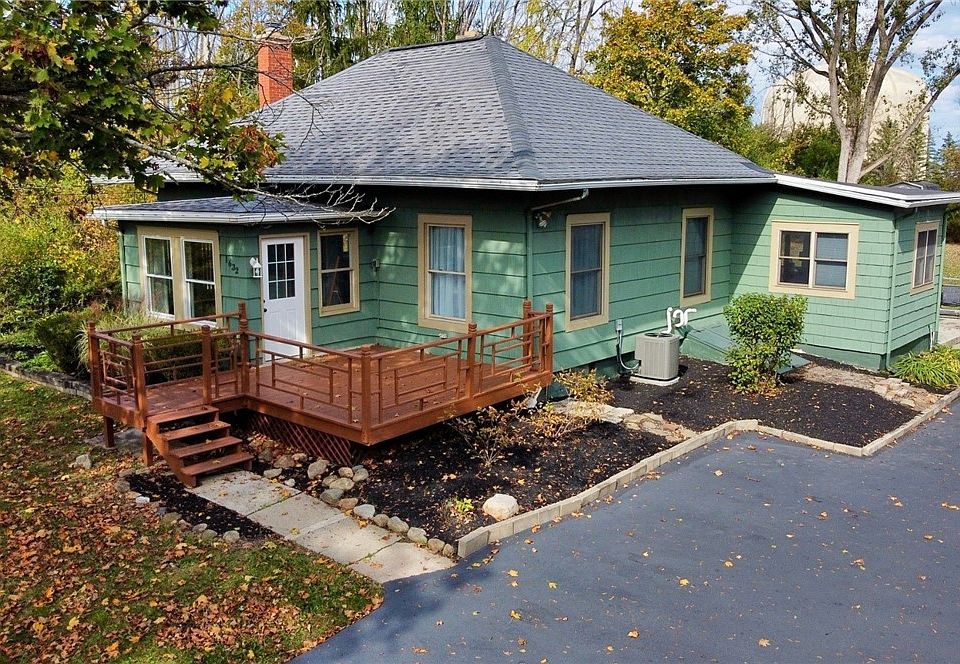 Set on nearly 3/4 of an acre, this beautifully updated 3-bedroom, 1-bath home perfectly combines modern updates with inviting charm. Step onto the charming front deck and into a generous foyer, where durable stone flooring combines both beauty, functionality and offers plenty of space to greet guests and seamlessly connects to the main living area. The spacious living room features gleaming hardwood floors, a gas fireplace framed in classic brick, built-in shelving, wood cabinetry, and a stunning bay window. Through the living room is a beautifully updated kitchen and dining area featuring elegant porcelain plank flooring, striking granite countertops, a deep farmhouse sink, abundant cabinetry, and a spacious island that provides additional workspace and seating. Sleek, modern appliances ('21) enhance the kitchen’s contemporary appeal, while the open layout makes it easy to cook, dine, and entertain. Adjacent to the dining area, the laundry room features direct outdoor access for added convenience. The home’s three bedrooms continue the theme of comfort and style, offering inviting spaces filled with natural light. One bedroom features durable and attractive vinyl laminate plank flooring, providing a modern look with easy maintenance. The remaining bedrooms are equally spacious and flexible, ideal for restful retreats, a home office, or a creative space to suit your needs. The full bathroom is thoughtfully updated with tile flooring, a new vanity and commode, and a convenient linen closet, combining modern functionality with classic comfort. The freshly painted basement with new Bilco bulkhead doors ('24) adds versatile space for storage or recreation. The newly paved, expansive driveway (’24) sets a grand welcome to the home. A beautifully designed back deck and stamped concrete patio with hot tub hookup create an ideal setting for serene relaxation. Nestled among mature trees, this property offers privacy and a tranquil retreat with no rear neighbors.Other updates include:HVAC & HWT ('22), Bubbler system ('21).Steps from a local golf course, minutes from Knox Farm State Park, close to all amenities, & a short drive to Rte 219 & I-90. Open, Sat., 11/1, 11-1pm.