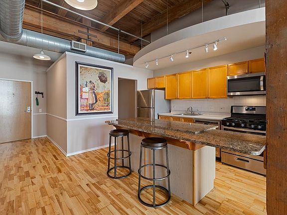 Welcome home to this sophisticated Brick and Timber 2 bed / 2 bath Loft in the beating heart of the Chicago South Loop! Fixed in the highly sought-after Bicycle Station Lofts, where historic charm meets modern comfort -- This unit offers Soaring 12-foot ceilings, exposed brick and timber beams, and dramatic floor-to-ceiling windows that fill the open-concept living space with incredible natural light. The inviting living room features a cozy fireplace and direct access to a private balcony - perfect for morning coffee or evening relaxation. The updated kitchen is ideal for entertaining, showcasing stainless steel appliances, an enlarged granite island, and plenty of storage space. The spacious primary suite includes an organized walk-in closet, a lofted storage area, and an ensuite bath with a tub/shower combination. The versatile second bedroom is perfect for guests or a dedicated home office, with a nearby full bath featuring a walk-in shower. Recent upgrades provide peace of mind, including a new furnace and A/C (2021), new washer/dryer (2023), and freshly refinished hardwood floors (September 2025). The carpeted areas have also been replaced with engineered hardwood (September 2025) for a seamless, elevated look. Enjoy convenient in-unit laundry, ample storage, and building amenities such as an elevator, fitness room, storage lockers, and bike storage. Affordable assessments include: Common Insurance, Exterior Maintenance, Lawn Care, Scavenger, Snow Removal, Water, Fitness Center, Storage and Bike Storage. For convenience, this unit is located near Soldier Field, Burnham Harbor, Museum Campus, parks, grocery stores, Roosevelt Collection Shops, and CTA Green/Red/Orange lines, this loft offers the best of South Loop living with unbeatable access to everything Chicago has to offer. Schedule your tour today!