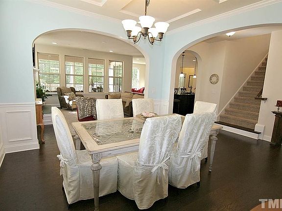 Beautiful 5 bedroom home in Salem Village with lg unfinished basement. Gourmet kitchen w/double oven,gas cooktop,stainless appliances,granite counters,& lg island. Open floor plan w/ hardwoods in entry,office,dining,family,kitchen,& breakfast rm. Separate dining rm, office,& 1st floor BR + full bath downstairs. Lg Master BR w/sitting area & bath w/tile floor & tile shower. Lg Bonus Rm. Screened porch overlooks private, wooded area. 3 car garage. Great Apex location near restaurants & shopping.