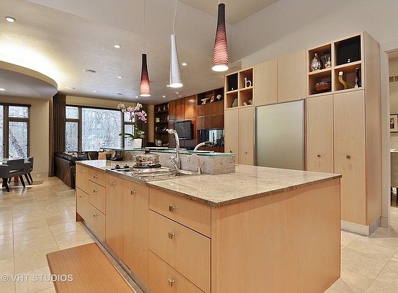 Exquisite Contemporary Ranch in pristine condition! 2004 Gold Key Winner for Best Architecture in IL. Over 4000 sq ft with custom high end finishes throughout. Gorgeous chefs kitchen with radiant heated floors opens to an expansive family room with custom wood cabinetry. 17 ft main floor ceiling. Perfect home for entertaining! Luxurious master suite with spa-like bath, heated floors. All bedrooms have ensuite baths. Enjoy your privacy and relax in the professionally landscaped yard, beautiful pool. Full basement includes finished rec room, bedroom and full bath. New stucco, roof and Marvin windows.
