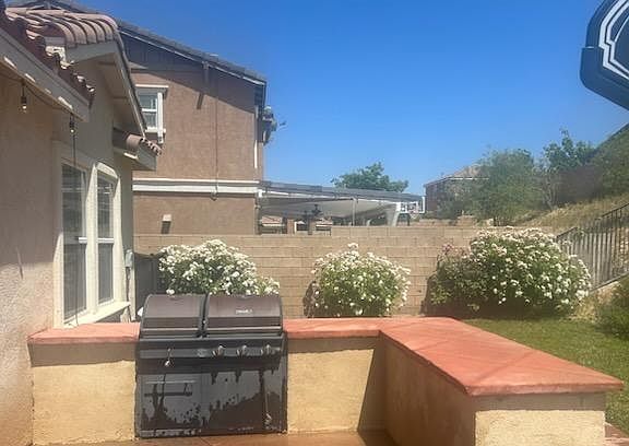 Over 1700 sq. feet of living space in the beautiful West Palmdale home. Large open concept kitchen/dining family area with breakfast bar. Fireplace in family room; carpet and tile throughout, nice paint colors, master bath has separate soaking tub and shower; large walk-in closet with built-ins. Nice stamped concrete patio with built in BBQ area. Rent: $2,950 Security Deposit: $2,950 Amenities: Landscaping included. Renter is responsible for ALL other amenities (i.e. electric, gas, water, garbage, etc).