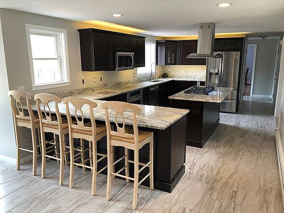 3,713 Square feet of living on over 5 Acres. Beautiful updated kitchen and bathrooms all with quartz counter tops. Four bedrooms on the second floor, finished third floor with new carpets and a built in bar perfect for a man cave. The Master Suite has two ceiling fans. First floor hardwood floors replaced in 2018. The gorgeous four season Cathedral Sunroom has radiant heated floors perfect for all weather including snow. The living room has a wood fireplace and another gas fireplace is located in the kitchen. If you're a Nature Lover, than this property is sure to please. In addition to the fenced back yard, there's also a cleared fenced area formerly used for harvesting a Blueberry Bush Garden. Let's also not forget that this home is close to all the Major Highways, Shopping, Beaches, Golf and the Train to Boston. What an Amazing Property.