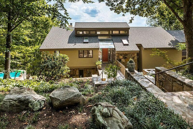 Stunning architect-designed hilltop home with one of the best mountain views in Knoxville. This custom, one-owner home is only 15 minutes from downtown and UT in desirable Riverbend area. Private cul-de-sac location on wooded 3+ acres. Multiple decks and huge windows, all looking out at the mountains. Main level features cathedral ceilings, skylights, hardwood floors - with kitchen, dining room, spacious living room, family room, and master suite. Lower level includes two bedrooms, rec room, laundry, and full bath - and opens to in-ground gunite pool and patio. Guest suite on ground level with huge bedroom and full bath. Separate guest/staff suite includes two rooms and full bath.Once-in-a-generation opportunity!