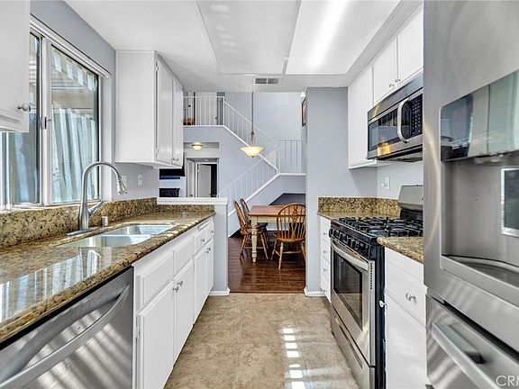 Welcome to your new home which offers a move-in-ready living space. Walk into a split-level layout with spacious living room and dining area which provides flexibility, while modern finishes like granite counters give it a contemporary edge. Bedrooms are spacious and separated for privacy with one room downstairs and one room upstairs. Outdoor living is a bonus with a private covered patio, and parking is convenient with both garage and assigned space. The LOW HOA offers amenities which include pool, spa, luscious greenery which add leisure value, and the overall location provides easy access to schools, shops, and freeways. This beautifully maintained complex had recent roof replacement as well. Don't miss this opportunity to own in the highly desirable Laurelwood Community of Corona