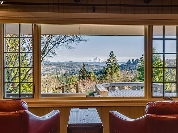 A stunning MT HOOD view awaits you as you follow a long, paved driveway to a tastefully updated ranch style home. This sanctuary has two generous master suites, a den/office with built-ins a living area with brick fireplace and large windows that capture picturesque views. Front and back decks extend the living space to the outdoors.