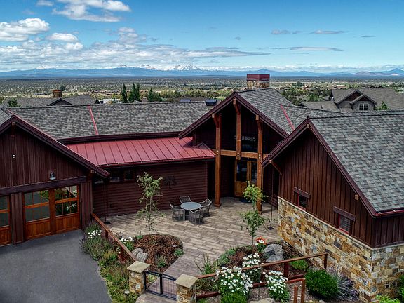 This beautiful one-level home is an entertainer's dream come true. As you walk into the foyer, you are greeted by a large great room with vaulted ceilings featuring gorgeous 19th century wood beams, English Oak hardwood floors and a floor to ceiling stone hearth fireplace. The Chef's kitchen has granite countertops, two islands, beautiful wood cabinetry, GE Monogram stainless steel appliances and a large walk in pantry. The large westerly facing windows in the great room area show off the gorgeous Cascade Mountain views. Heading out to the patio that wraps around the back side of the home and features several sitting areas, an outdoor BBQ kitchen, one can imagine the stunning sunsets to be enjoyed. The stunning landscaping adds to the outdoor living space. The master suite proves to be a quiet oasis with a large spacious walk-in closet, two separate vanities in the bathroom and lovely glass shower. Your guests will enjoy their privacy in their en suite quarters on the opposite side of