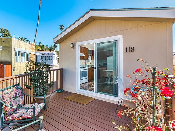One year old charming beach house. Priced to sell. High ceilings. Light and bright. All new appliances. Roomy deck. Open, corner location with panoramic vistas. Quiet and private. Carport is attached that can fit one or two small cars. Located in the Palisades Bowl, a manufactured home community where you do not own the land or pay property taxes. The low monthly space rent to the new owner is $946.00 a month. Rent is protected under rent control. Buyer must obtain park approval with Palisades Bowl Management. Community heated pool. Fabulous location across from the beach. Safe pedestrian cross light near entrance of community.
